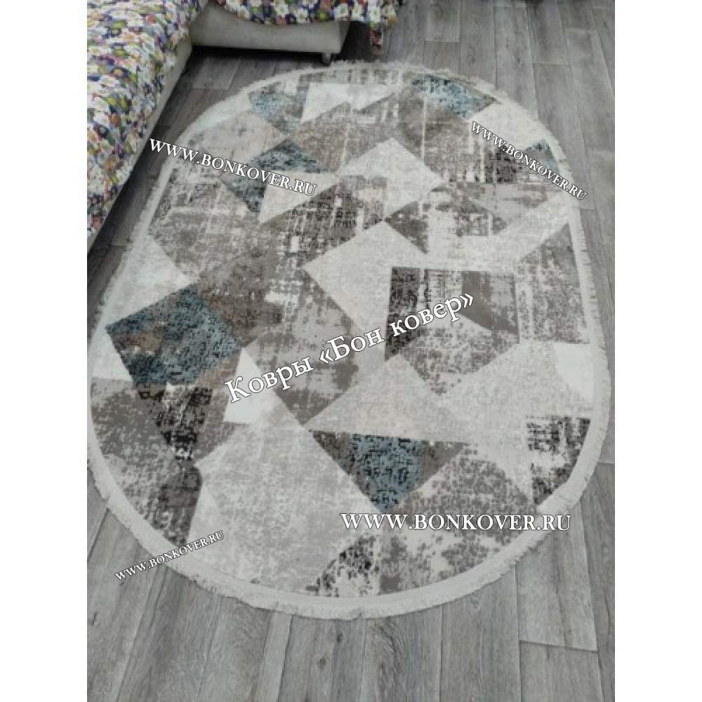 Элегантный Ковер Коротковорсный Лайт Дизайн 14 Ромбы Синий с Серым Овал наполняет интерьер жилого пространства теплом и уютом, гармонично сочетает в себе изящество и стиль. Он выполнен из износостойких материалов, комфортный и долговечный.